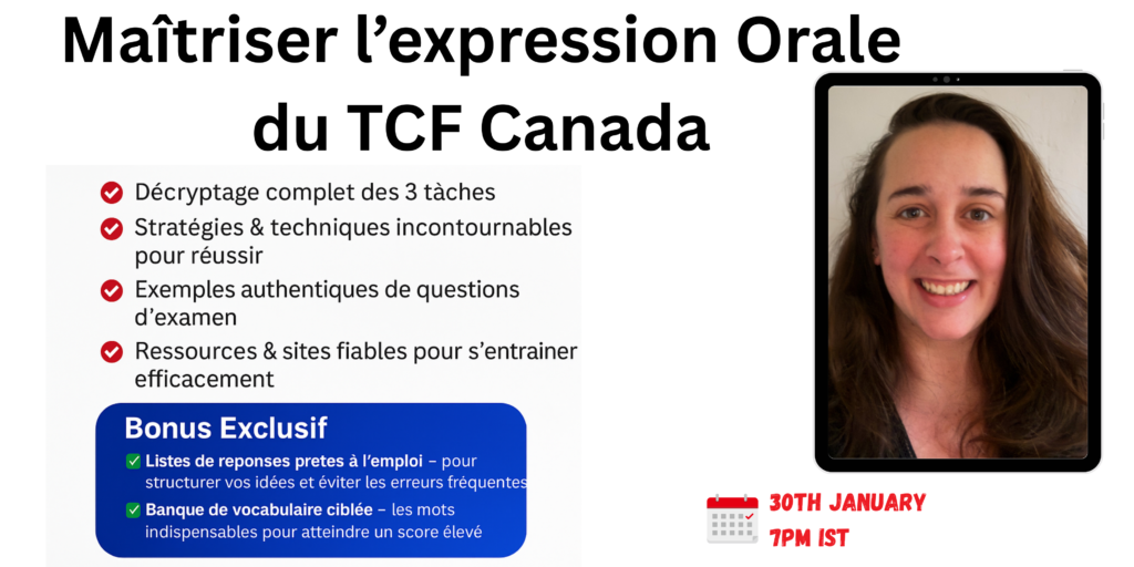 Preparing for the TCF Canada can feel overwhelming, especially when it comes to the oral expression tasks. This exclusive workshop is designed to give you the clarity, structure, and confidence you need to succeed!